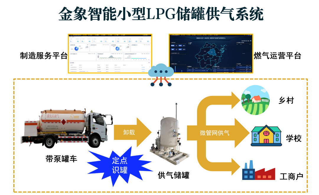 智能化监控与管理体系:系统集成高精度传感器与物联网技术,实时监测LPG储罐压力、液位及泄漏状态,并支持远程控制。构建“运-配-储-用”全流程智能管控体系,实现从气源运输至用户终端的全程智能化管理,真正达成无人值守、智能配送与远程监控。